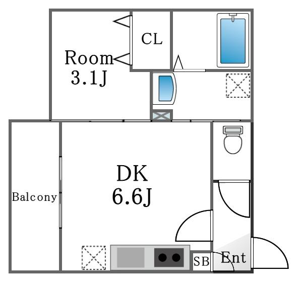 - 間取り:1DK(DK6.6帖 × 洋室3.1帖)