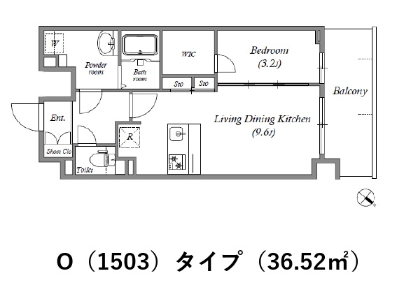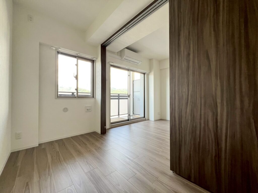 この1LDKタイプのお部屋は、9.6帖のリビングに加えて3.2帖の寝室があり、コンパクトながら生活空間をしっかり分けられるのが魅力です。