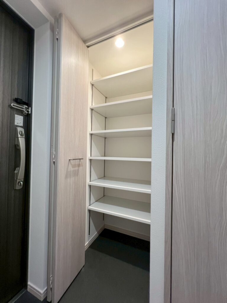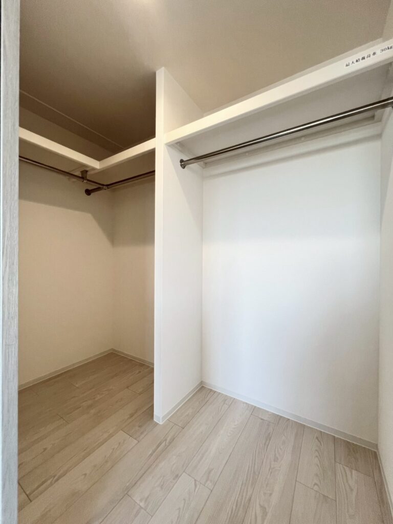 室内には、収納力の高いウォークインクローゼットを備えており、衣類や荷物をすっきり整理できるのが嬉しいポイント。新築ならではの清潔感とホテルのように洗練されたデザインで、毎日を気持ちよく過ごせます。