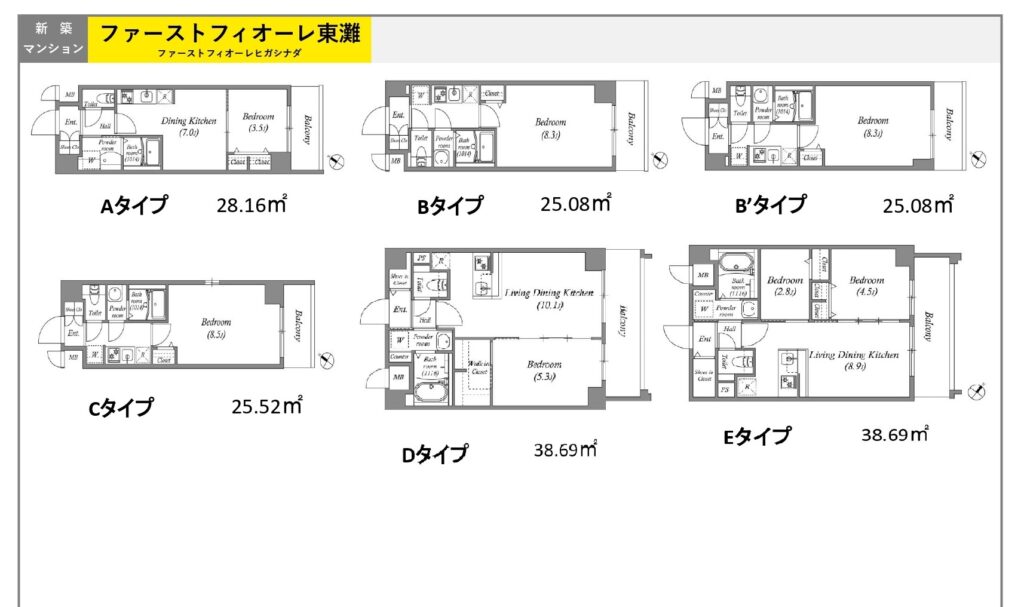 ファーストフィオーレ東灘では、全部で6種類の間取りタイプが用意されています。